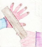 Pelo tempo em que ele destinou a cada caderno teria que existir um leitor óptico em seus olhos para saber se aquilo que as crianças escreveram estava adequado aos moldes ensinados (digo moldes, porque, pelo jeito, não há espaço para criatividade). É notável que ele queria mesmo era bater em todos. Quanto maior a reação das crianças, maior eram as pancadas com uma vara.