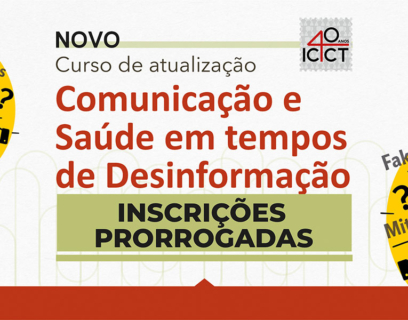 Voltado a profissionais de comunicação vinculados ao Ministério da Saúde, o curso será oferecido pela primeira vez na Fiocruz Brasília O Icict abriu inscrições para a primeira edição do curso de atualização em Comunicação e Saúde em Tempos de Desinformação. Com a iniciativa, o Icict reforça seu papel como protagonista do debate sobre o tema […]