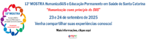 A Escola de Saúde Pública de Santa Catarina (ESPSC) e o Colegiado da Política Nacional de Educação Permanente em Saúde e da Política Nacional de Humanização da Atenção e da Gestão do SUS (PNEPH/SC), tornam públicas as regras para a participação da 13ª Mostra HumanizaSUS e Educação Permanente em Saúde. O evento acontecerá nos dias 23 e 24/09/2025.