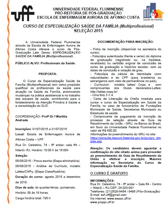 O Curso de Especialização de Saúde da Família –UFF (Multiprofissional) tem como objetivos principais: