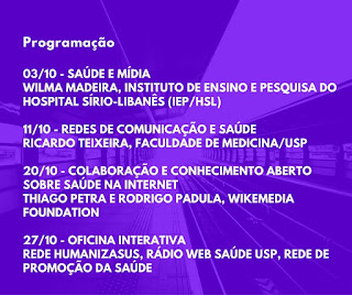 Na última segunda-feira, dia 03.10.16, teve início o curso de extensão “Comunicação e Saúde: espaços, estratégias e atuação”, promovido pela Associação Paulista de Saúde Pública – APSP. O objetivo do curso é estimular a reflexão sobre o desenvolvimento de tecnologias de comunicação e sua utilização no campo da saúde, assim como sobre os processos e instâncias de mediação.