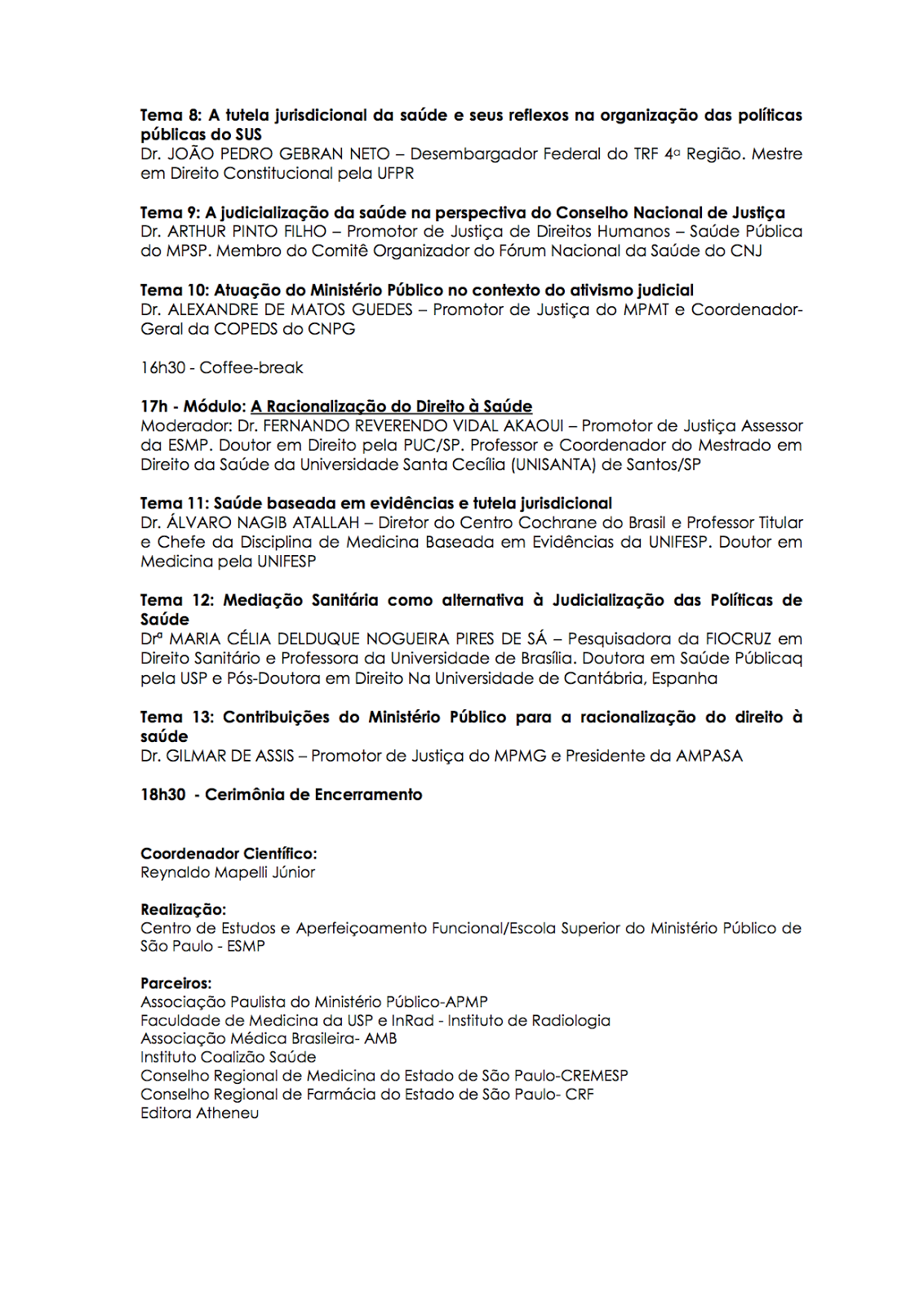 II Congresso de Saúde Pública do MPSP – Judicialização da saúde e organização das políticas públicas