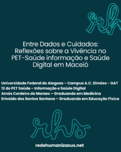 Autores: Amós Cordeiro de Moraes e Erivaldo dos Santos Santana Monitores PET-Saúde Digital – GAT 12 da Universidade Federal de Alagoas (UFAL) Coautora: Maria Joselia Cardozo de Melo Fisioterapeuta – Secretaria Municipal de Saúde de Maceió/AL – eMulti Nossa experiência na Atenção Primária maceioense, durante estas quatro semanas de imersão, pelo PET Saúde – […]