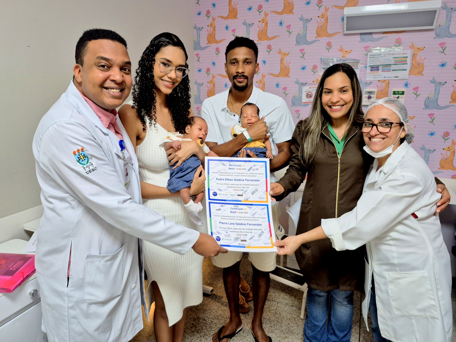 Após 82 dias na UTI e um final feliz, gêmeos recebem alta e ganham certificado de vencedor no HMIJS