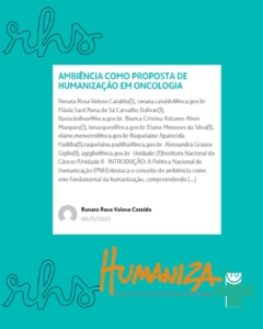 Renata Rosa Veloso Cataldo(1), re************@in**.br Flávia Sant’Anna de Sá Carvalho Bolivar(1), fl************@in**.br. Bianca Cristina Antunes Alves Marques(1), bm******@in**.br Elaine Menezes da Silva(1), el************@in**.br Raquelaine Aparecida Padilha(1),ra****************@in**.br Alessandra Grasso Giglio(1), ag*****@in**.br Unidade: (1)Instituto Nacional do Câncer/Unidade II INTRODUÇÃO: A Política Nacional de Humanização (PNH) destaca o conceito de ambiência como eixo fundamental da humanização, compreendendo […]