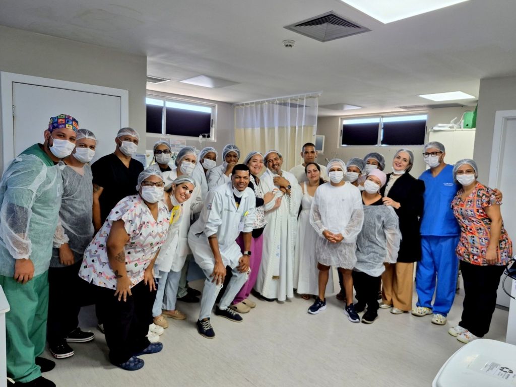 No mesmo dia, a equipe entrou em contato com Padre Cristo. Ele esteve na unidade, conversou com Natali, visitou Saullo e marcou já para esta quinta-feira (18), pela manhã, o momento tão desejado pela família. Os padrinhos Janaeli e Gilmar foram avisados ontem à noite e saíram hoje cedo de Teolândia, a 180 quilômetros de Ilhéus, onde todos residem. O batizado foi cercado de pura emoção. A equipe de plantão da UTI Ped participou do momento que durou cerca de 30 minutos.