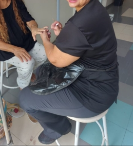 As pacientes internadas viveram uma experiência especial, com esmaltação, tintura e escova nos cabelos. Cada sorriso diante do espelho revelava mais do que vaidade — mostrava a força, a esperança e o brilho de quem segue lutando com coragem.