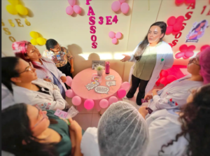 Após o treinamento, a equipe de enfermagem foi convidada a percorrer as estações, cada uma abordando duas metas da IHAC. Nessas etapas, foram propostas atividades como perguntas e respostas, quebra-cabeças e dinâmicas interativas. Ao final do circuito, os envolvidos recebiam o selo simbólico “Eu Sou Amigo da Criança”, certificando o alinhamento do profissional com os objetivos da iniciativa.