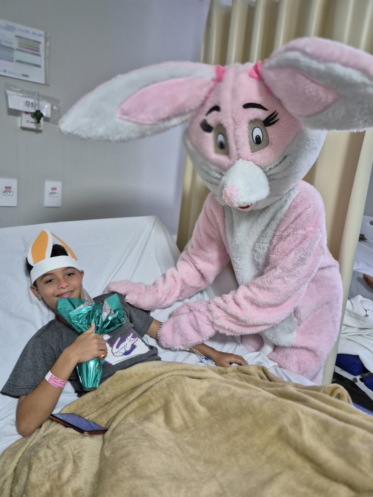 O ponto alto das celebrações aconteceu no domingo, transformando a rotina de crianças e gestantes internadas ou em atendimento de urgência. Brincadeiras, junto à visita do “Coelhinho”, trouxeram cor e entusiasmo para as crianças atendidas na Emergência ou internadas na Pediatria. Ovos de Páscoa também foram entregues às gestantes e puérperas internadas na unidade.