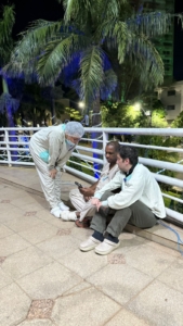 Numa noite de clima ameno e luzes natalinas, a equipe da UTI Especialidade II, realizou uma ação simples, porém profundamente significativa: conduziu pacientes até a sacada do hospital para que pudessem ver a rua, sentir o ar da noite e contemplar a decoração de Natal.