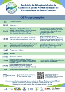 Dia 30/09/2025 no Centro Cultural da UNOESC em São Miguel do Oeste SC, acontecerá o Seminário de Ativação da Linha de Cuidado em Saúde Mental do Extremo Oeste de Santa Catarina.