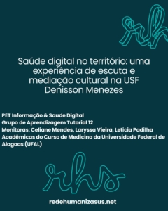 PET Informação & Saude Digital Grupo de Aprendizagem Tutorial 12 Monitoras: Celiane Mendes, Laryssa Vieira, Leticia Padilha Acadêmicas do Curso de Medicina da Universidade Federal de Alagoas (UFAL) Preceptora: Rosimeire Machado Barbosa (USF Denisson Menezes – SMS Maceió/AL) A experiência relatada ocorreu no âmbito do Programa de Educação pelo Trabalho para a Saúde – […]